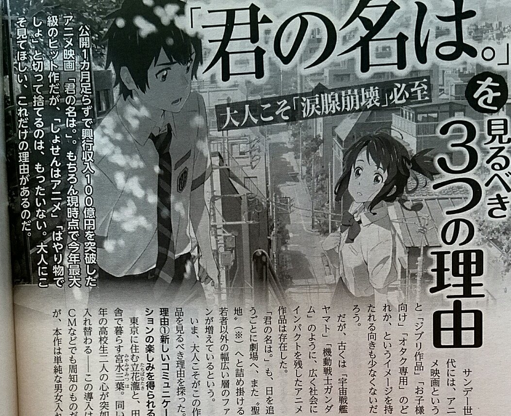 君の名は平日のレイトショーに行けばスーツ姿のリーマンやOL風が結構見てる