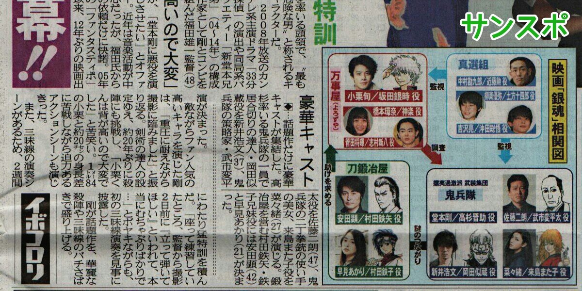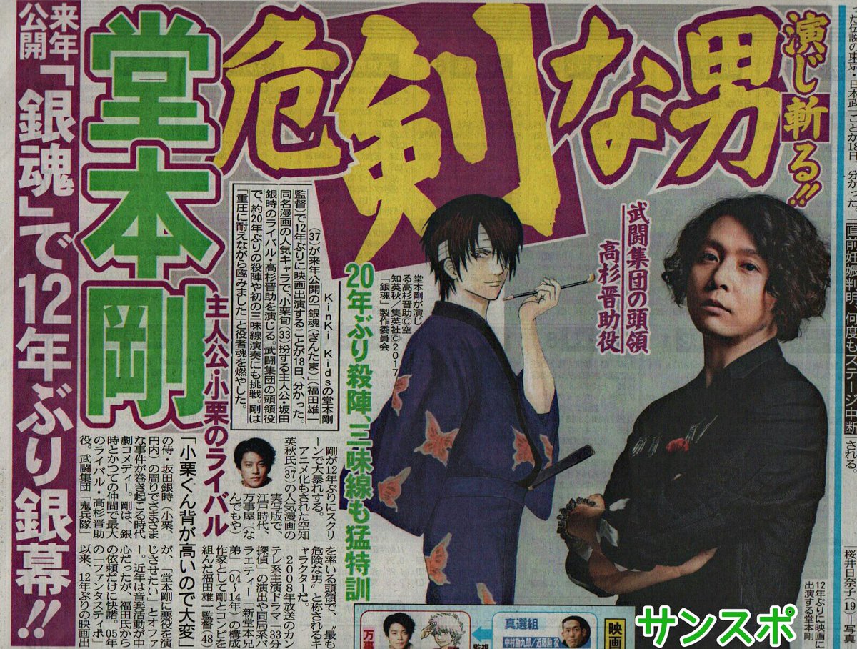 映画「銀魂(ぎんたま)」(福田雄一監督、2017年公開予定)に、武闘派集団の“絶対的頭領”高杉晋助役で出演することが19日、分かった。