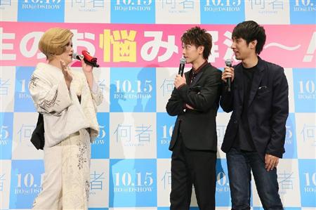 ・映画「何者」学生限定試写会イベントに参加した(左から)IKKO、佐藤健、朝井リョウ