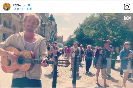 クライヴ・オーウェンらと共演する新作映画『オフィーリア(原題) / Ophelia』をチェコ・プラハで撮影しているトム。そのプラハの中心とも言うべく旧市街広場で、変装もせずにギターの弾き語りをする動画をアップしたトムだったが、驚きなのは、大勢の人々がすぐ横を通り過ぎていくにもかかわらず、一向に気付かないこと。